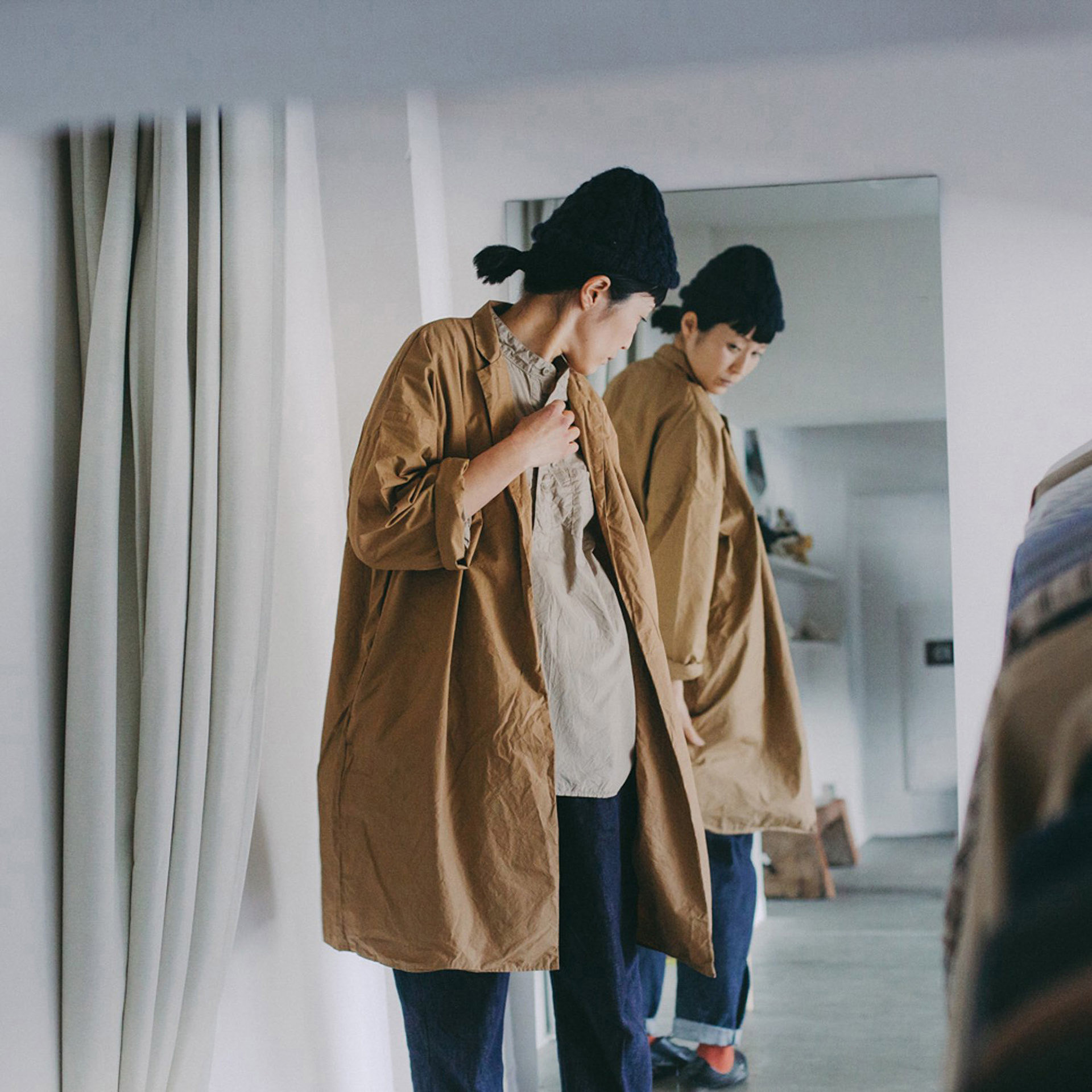 「何にも属さない水のようなもの。着る人のスタイルで変化し姿や表情を変えるもの」をコンセプトに、簡素で簡潔で平凡な服をつくっています。
